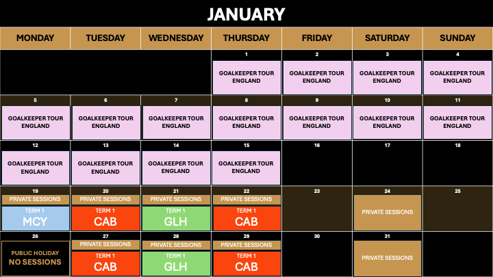 Please find all important ONE Goalkeeping dates for 2026 in the interactive calendar below. Please note that dates and events are regularly updated so be sure to check back often.